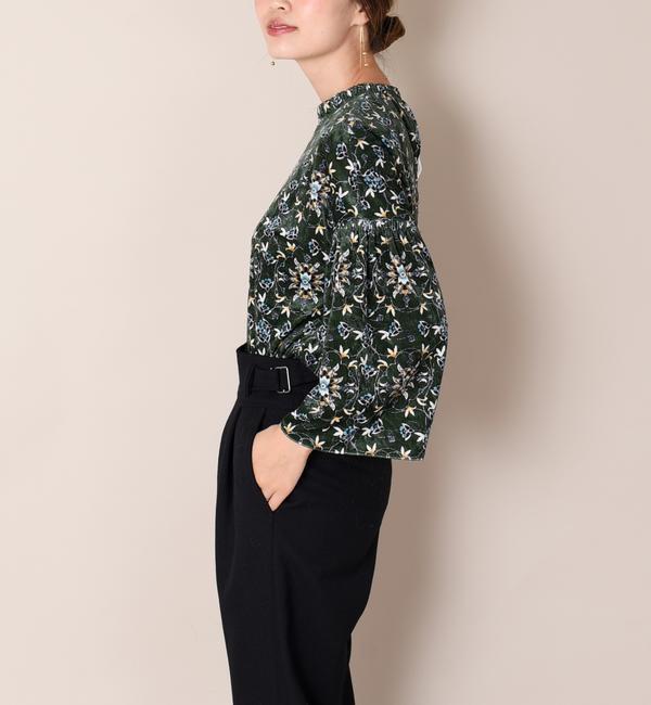 Prefer SHIPS: フラワープリントベルベットギャザーネックブラウス