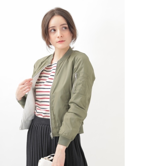 【送料無料】 気分やスタイリングによってアレンジできる、2way仕様が魅力的なリバーシブルブルゾンです。表側は袖のデザインポケットがアクセントを効かせる、マットなナイロン生地で仕上げた本格派MA-1。裏側は繊細で華やかなレースをあしらったレディなリブブルゾンに仕上げました。1枚で2役の幅広いコーディネートが可能なアイテムは、大人女子のワードローブに必携です◎ アースミュージックアンドエコロジー/earth music&ecology earth music&ecology|アウター|ブルゾン・スタジャン