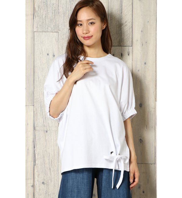 【3000円(税込)以上で送料無料】 [アイテム説明]今年らしくギャザーを寄せたボリュームスリーブ、裾はレースアップ風のリボンとトレンドを盛り込んだデザインTシャツ。一枚でも着映え力を発揮してくれるので、スキニーやショートパンツに合わせるだけで垢抜けコーデが即完成!晩夏から秋まで使える一枚です♪[洗濯表示]洗濯機洗い可(弱く) ヴァンスシェアスタイル/VENCE share style VENCE share style|トップス|Tシャツ・カットソー