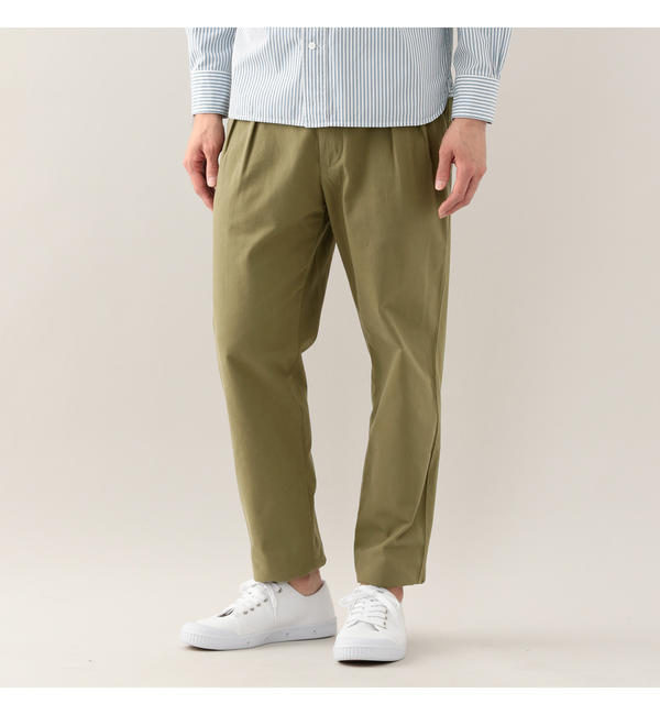 【送料無料】 <トレンド感のある2プリーツテーパードパンツ>【デザイン】クラシックな印象のインプリーツを2本入れながらも、ヒップから裾にかけてテーパードを利かせ、モダンなシルエットに仕上げたプリーツパンツです。リラックス感と抜け感が今っぽいバランスのパンツです。【素材】ムラ糸のコットンツイル素材を使用。ヴィンテージのミリタリーウェアのような表情を再現する為、糸から生地を織る織機にも拘ったファブリックです。ゆっくり時間を掛けて、しっかり密に織られたこの素材は着用と洗濯を繰り返すとさらに柔らかくなり、味が出てくるのが特徴。長い間穿き込んでもらいたいパンツです。モデル:H180 C94 W79 H96 着用サイズ:6 マッキントッシュフィロソフィー ・ エムピーストア/MACKINTOSH PHILOSOPHY ・ MP STORE MP STORE|パンツ|その他