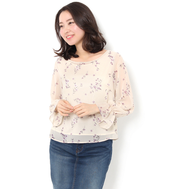 【送料無料】 透け感のあるシフォン素材に、オリジナルの小花プリントをあしらったBLは、上品な肌見せと、ふんわりとしたギャザースリーブで愛らしさをプラスした品のあるアイテムです。 ビーラディエンス/BE RADIANCE トップス|シャツ・ブラウス