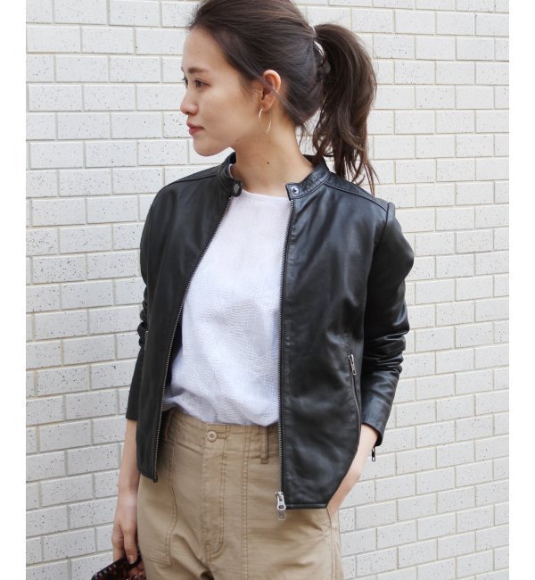 【送料無料】 【2018 SS】JOURNAL STANDARD relume◆relume 不動の人気を誇る定番ライダースが2018SSも登場!製品染め独特のシワ感が雰囲気のいいラムレザーを使用!首元がすっきりとしたシングル仕立てのコンパクトなデザイン。ワンピースやひざ丈スカートなど、甘めのアイテムとも好相性です◎本格的なディテールながらも、ハードになりすぎず女性らしい印象に。柔らかなラムレザーは窮屈感が少なく着こむほどにさらに風合いが増し、お気に入りの一着に!着心地にもこだわり、身頃裏地は着心地の良いコットンを使用、さらに袖裏地は別素材で滑りを良くしました。カジュアルなスタイルからきれいめスタイルまで、幅広く活躍する優秀ライダース。今シーズンはトレンドのレースワンピや落ち感のあるスカートに重ねた着こなしがおすすめ。ワードローブに加えておきたい使える1枚です!※取り扱いについては、商品についている洗濯表示でご確認ください。※店頭及び屋外での撮影画像は、光の当たり具合で色味が違って見える場合があります。商品の色味はスタジオ撮影の画像をご参照ください。着用スタッフ身長:160cm 着用サイズ:38モデルサイズ:身長:165cm バスト:80cm ウェスト:58cm ヒップ:85cm 着用サイズ:36本体:洗濯不可、製品染め、天然皮革(アイロン禁止) ジャーナルスタンダード/JOURNAL STANDARD JOURNAL STANDARD relume|ジャケット・スーツ|ライダースジャケット