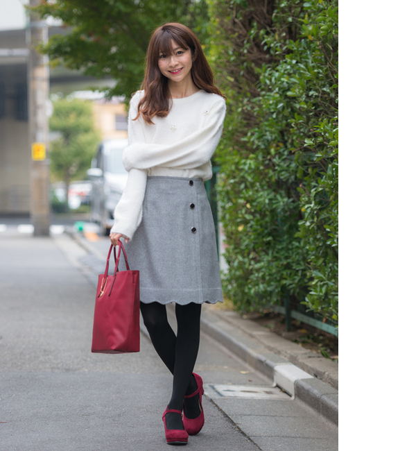 【送料無料】 無地のスカラップデザインスカートです♪ボタンがとってもキュートなアイテム◎◎ベーシックなので合わせやすいアイテムです!!1枚あるとコーデの幅が広がります!! ルゥ デ ルゥ/Rew de Rew スカート|スカート,台形