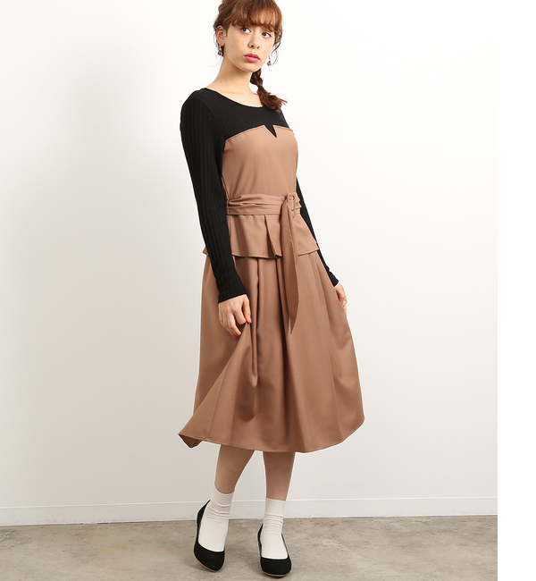 【送料無料】 リブニット+ベアワンピースを重ねたトレンドスタイルが1枚で完成。旬なレイヤードスタイルが簡単に楽しめる便利な1枚です。素材感をいかした今年らしいナローシルエットで高見え効果も大。ウエスト部分のペプラムディテールがお腹まわりをさり気なくカバーして、腰高バランス&メリハリ感を強調してくれるのもポイントです。ウエストはバッグゴム仕様になっているので、着心地も抜群。被るだけで簡単に着られます。洗濯又はクリーニングの際は、裏返してネットを使用して下さい。洗濯の際、多少色落ちしますので、単品でお洗い下さい。多少色落ちしますので、洗濯又はクリーニングの際、淡色のものとは別にお洗い下さい。淡色製品の場合は、蛍光増白剤の含まれていない洗剤を使用して下さい。洗濯後は脱水してすぐに干して下さい。濡れたまま放置しますと色泣きや他の衣類などに色移りすることがあります。この製品は水洗いで多少縮みます。着用による摩擦で他の衣料やかばんなどに色移りすることがあります。白や淡い色とのコーディネートはお避け下さい。 この製品は、摩擦(特に湿った状態での摩擦)や、汗や雨などで濡れた時は他の衣料や下着(特に白物)に色移りする場合がありますので、十分ご注意下さい。この製品は、強い日光(または照明)を長時間受けると変色する恐れがあります。ご着用及び保管の際は、ご注意下さい。また、汗に濡れたまま長時間日光を浴びたり、濡れたまま放置すると変色する恐れがあります。取扱いには十分注意して、ご着用ください。この製品は着用による摩擦作用でピリングになりやすい性質があります。着用後はブラシで毛並を整え、出来てしまった毛玉は糸を傷つけないように小ばさみや毛玉取り器などで除去して下さい。強い日光や照明に長時間当たりますと、変色しやすくなっておりますので、光の当たる場所に放置せず、暗所で保管するようお願いします。∞-∞-∞-∞-∞-∞-∞-∞-∞-∞-∞-∞-∞-∞-∞-∞-∞-∞-∞-∞-∞※サイズ表は、実物を採寸した実寸です。商品タグのサイズは、メーカー基準サイズとなりますので実寸とは異なります。∞-∞-∞-∞-∞-∞-∞-∞-∞-∞-∞-∞-∞-∞-∞-∞-∞-∞-∞-∞-∞ ロペピクニック/ROPE’ PICNIC Rope’Picnic|ワンピース|ワンピース