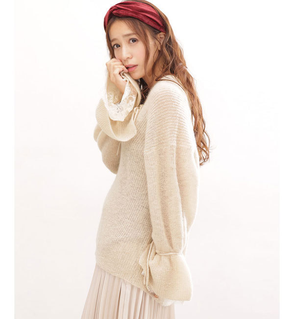 袖レースフレアモヘヤニット