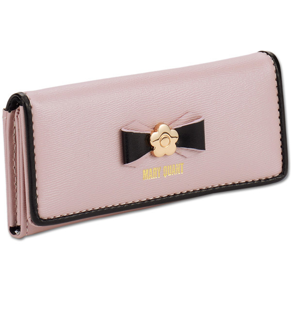 【送料無料】 横方向にシボの入ったレザーに、デイジー&リボンをデザインしたシリーズ。2色展開で、立体的なリボンと縁取りのバイカラーが、アクセントに効いています。箔プリントのロゴもポイント。キーケースは、フックが3つ付いています。 マリークヮント/MARY QUANT MARY QUANT|小物|キーケース