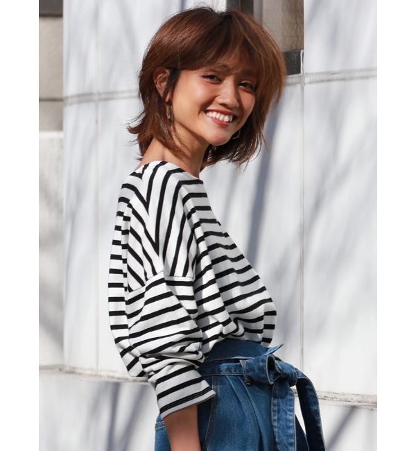 【送料無料】 【特徴】定番で人気のドロップショルダーのボーダーカットソーです。今回はモカとレッドが新色で登場。しっかりした生地感なので、透けを気にせず着用していただけます。【スタイリングポイント】デニムやベイカーパンツなどカジュアルなアイテムのコーデがマッチします。 アングリッド/Ungrid トップス|Tシャツ・カットソー