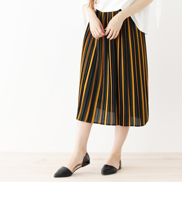 【3000円(税込)以上で送料無料】 シックなカラーのレジメンタルストライプが落ち着いた印象のスカート。プリーツデザインにウエストゴムと、やわらかな着心地で快適な一枚です。裏地がしっかり付いているので一枚でも安心して着られます。モデル情報:身長168cm B75 W60 H87 着用サイズ:38(M)店舗へのお問い合わせ商品番号:763-73202主に秋に着用いただける商品です。 中国製 ピンクアドベ/pink adobe ピンクアドベ|スカート|スカート