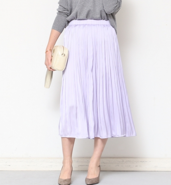 【送料無料】 体の動きに合わせて軽やかに揺れるスカート。ヴィンテージ加工のサテンにランダムプリーツを施したTIARAではもはやおなじみの生地を使っております。寒い時期はふわふわのニットとコンビネーションを季節が変わったら綿素材のニットとのスタイリングが素敵。※アイボリーの着用サンプルは実物より長めです。 ティアラ/Tiara スカート|スカート
