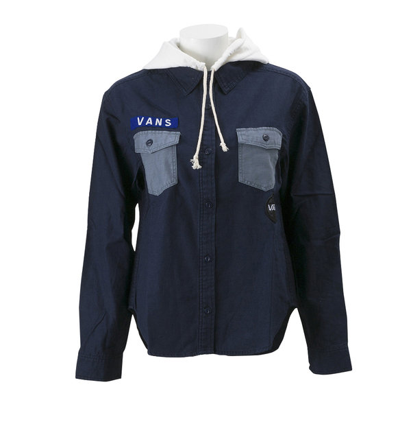 【送料無料】 VANS【ヴァンズ】ガールズアパレルライン。ミリタリーテイストのフード付きシャツ。フードは取り外しが可能!素材=本体:綿100% フード部分:ポリエステル80% 綿20% 別布部分:綿100% エービーシー・マート/ABCマート VANS|シューズ|スニーカー