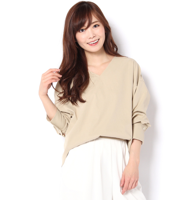 【送料無料】 程よい光沢とハリ感のあるツイル素材を使用したブラウス。Vネックのシャープなラインが顔周りをすっきりと見せてくれます。ドロップショルダーと体が泳ぐゆったりめのサイジングは、女性らしい華奢さを強調してくれる嬉しい効果も。合わせるアイテム次第でカジュアルからフェミニンまで、幅広いスタイルに活躍してくれるアイテムです。 アンディコール/un dix cors トップス|シャツ・ブラウス