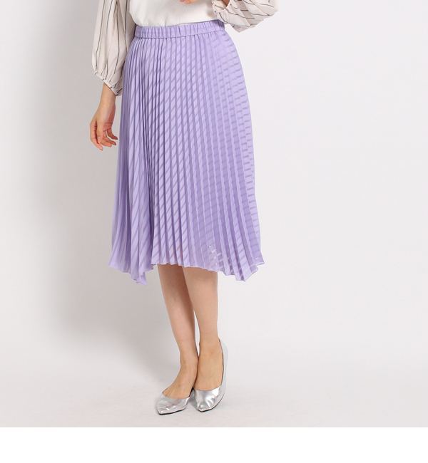 【送料無料】 透け感でバイアスボーダーを描いたプリーツスカートは動きを生むイレギュラーヘムデザイン。ドラマティックなシルエットと軽やかな素材感、鋭角的なアコーディオンプリーツの相乗効果でぐっと大人っぽくステキに着こなせるプリーツアイテムです。ウエストゴムの快適仕上げもリラックスしたい春夏の気分にぴったり。サイズ違いの商品もご用意しております。R:127-74019 S:127-74625モデル情報:身長172cm B80 W60 H85 着用サイズ:38店舗へのお問い合わせ商品番号:127-74732主に春に着用いただける商品です。 インディヴィ/INDIVI INDIVI|スカート|スカート