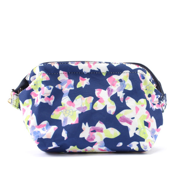 【送料無料】 きらきらと光が反射しているようなカモフラージュ柄にさりげなくハローキティがかくれんぼ。ファスナーの引手もキティのリボンモチーフで遊びの聞いたオトナかわいいシリーズです。 メランジェ マガザン/Melanger Magasin 小物|ポーチ
