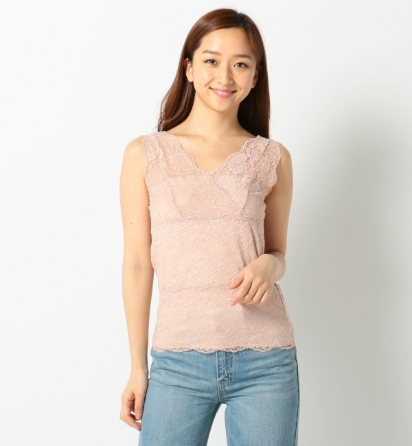 【送料無料】 繊細なレース生地を全体にあしらった、上品で華やかなタンクトップ。肩のレース部分は透け感があり、適度な肌見せができるので涼しげな印象で春夏にぴったり。一枚で着ても重ね着しても可愛い女性らしいアイテムです。 ミューズ リファインド クローズ/MEW’S REFINED CLOTHES トップス|Tシャツ・カットソー