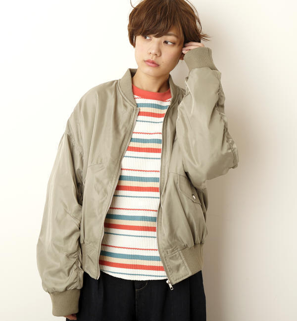 【送料無料】 トレンドのハンサムコーディネートを叶えてくれるリブブルゾン。裾にタックをオンすることで、さりげなく女子力をアピールできるアイテムに仕上げました。タフで動きやすい1着なので、デイリーアウターとしても大活躍してくれます♪ ダブルネーム/DOUBLE NAME ダブルネーム|アウター|ブルゾン・スタジャン