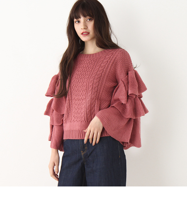 【送料無料】 さまざまな編み柄を取り入れた定番アランニットに、ふりっふりの袖フリルで今年らしさをオン! ニットに“袖コン”を取り入れた注目の一着です。遠目にも際立つ攻めたシルエットは、自然と視線を引きつけるニットスタイルに。バックスタイルも編み柄を変えた模様へのこだわりにも注目です。モデル情報:身長168cm B75 W60 H87 着用サイズ:02(M)店舗へのお問い合わせ商品番号:G13-13006主に冬に着用いただける商品です。 中国製 グローブ/grove grove|トップス|ニット・セーター