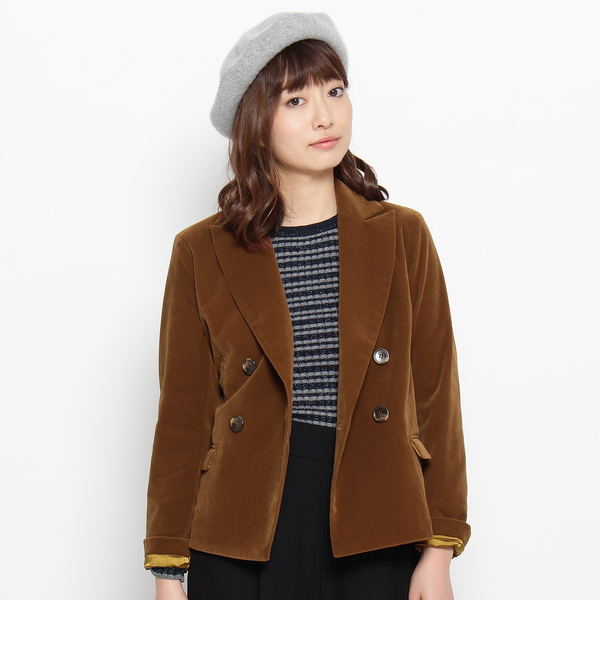 【送料無料】 トレンドのベロア素材を使用したヴィンテージ感あるジャケット。クラシカルなダブルブレストデザインもポイントです。ワイドパンツなどのボリュームボトムともバランスよく着こなせるコンパクトシルエットが女性らしく、着回しの幅もぐっと広げてくれます。モデル情報:身長169cm B75 W60 H86 着用サイズ:02(M)店舗へのお問い合わせ商品番号:G13-49003主に冬に着用いただける商品です。 中国製 グローブ/grove grove|ジャケット・スーツ|その他