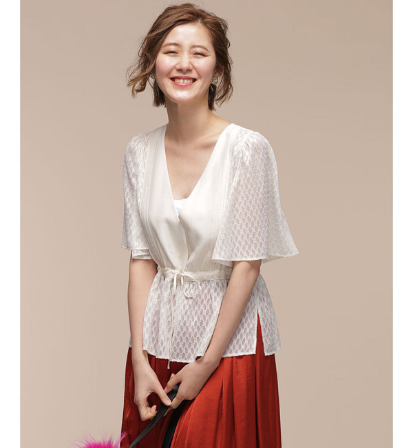 【送料無料】 透け感が女性らしさを漂わせるブラウス。コーデに表情をつけてくれるジャガード模様に視線が集中。軽やかな生地が風をはらんで涼感たっぷりの仕上がりです。動くたびにゆれるベルスリーブがこなれた雰囲気に。腰高効果のあるドロストデザインでスタイルアップも期待できる一枚。タイトスカートで女っぽさを強調したり、ワイドパンツでカジュアルに抜け感を出したスタイリングもおすすめです。model: H165cm 着用サイズ: FREE◆nano・universe◆■洗濯表示■家庭での洗濯禁止塩素系及び酸素系漂白剤の使用禁止タンブル乾燥禁止底面温度110℃を限度としてアイロン仕上げができる石油系溶剤による弱いドライクリーニングができるウェットクリーニング禁止■商品注意事項■こちらの商品は水や雨に濡れたり、汗による湿気、乾燥状態での摩擦により、薄い色の衣服などに色移りする可能性がございます。予めご了承いただき、ご使用の際にはご注意くださいますようお願い致します。 ナノ・ユニバース/nano・universe nano・universe Ladys|トップス|シャツ・ブラウス