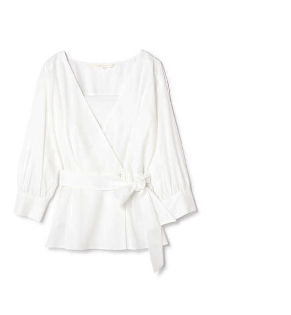 【送料無料】 フェミニンなカシュクールブラウスを今年トレンドの天然シャツ素材で新しく表現。鎖骨を美しく見せる衿開きデザインは共布胸あて仕様で安心感をプラスしています。様々なシーンで着まわせる春らしいブラウスです。【原産国】キャミソール:日本製、ブラウス:日本製 ナチュラルビューティー/NATURAL BEAUTY トップス|シャツ・ブラウス