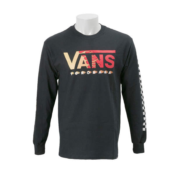 【送料無料】 VANS【ヴァンズ】メンズアパレルライン。2017年に12月に開催されたもMOONEYES主催日本最大級のインドアCar&Motorcycle Show≪YOKOHAMA HOT ROD CUSTOM SHOW≫にて発売されていたロングスリーブシャツ(長袖)が数量限定でオンラインストアでも発売!!フレームパターンをモチーフにした、VANSロゴや会場となった横浜(YOKOHAMA)のプリントされたインパクトあるアイテム。素材=コットン100%【VANSウェア サイズ目安】S=着丈:約69cm 身幅:約45cm 袖丈:約61cm 裄丈:約86?M=着丈:約69cm 身幅:約49cm袖丈:約61cm 裄丈:約86?L=着丈:約73cm 身幅:約55cm 袖丈:約64cm 裄丈:約93?XL=着丈:約75cm 身幅約59cm 袖丈:約66cm 裄丈:約96?XXL=着丈:約78cm 身幅:約65cm 袖丈:66cm 裄丈:約99?※広げた際のおおよその寸法になります。 エービーシー・マート/ABCマート VANS|トップス|Tシャツ・カットソー