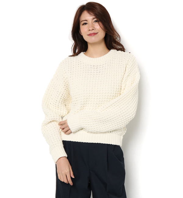 【送料無料】 カットソーで見るワッフル編みを使ったプルオーバーニット。ざっくりした編地が特徴的な一着です。大きく落とした肩まわりがよりざっくり感を引き立ててくれます。すっきりした身幅でボトムスのシルエットを選びません。 アパートバイローリーズ/apart by lowrys トップス|ニット・セーター