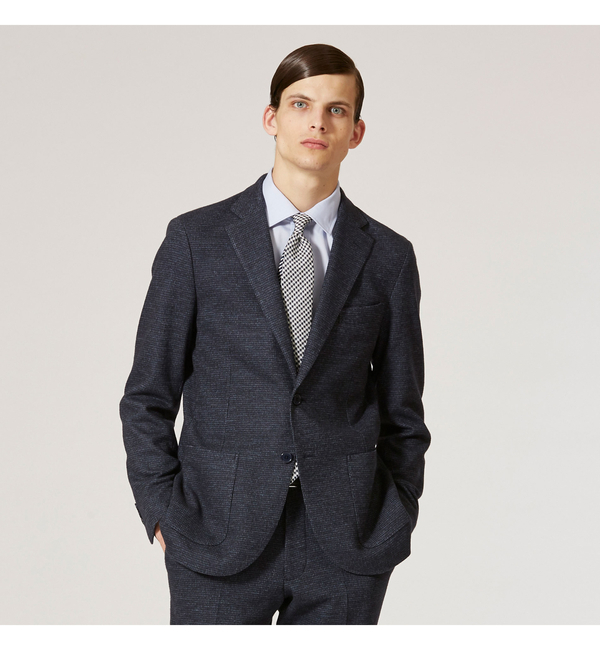 【送料無料】 <抜群のストレッチ性を備えたストレスフリーのジャージジャケット>抜け感のあるムードときちんと感をあわせ持ったドレスアップカテゴリー「イージードレッシング」。【デザイン】シングル2つボタンの腰パッチポケットデザイン。ウェストのシェイプを緩やかにした、リラックス感のあるシルエットです。【素材】ハウンドトゥース柄のツイードをジャージ素材で表現。抜群なストレッチ性を備え、ストレスフリーの着用感です。ウール高混率で、柔らかく、ソフトな肌触りが特徴です。*同素材のトラウザーズ(品番:H1R86-648)の展開もございますので、セットアップとしても着用頂けます。モデル(下部ディテール画像):H185 C88 W73 H96 着用サイズ:40R マッキントッシュフィロソフィー ・ エムピーストア/MACKINTOSH PHILOSOPHY ・ MP STORE MACKINTOSH PHILOSOPHY|ジャケット・スーツ|テーラードジャケット