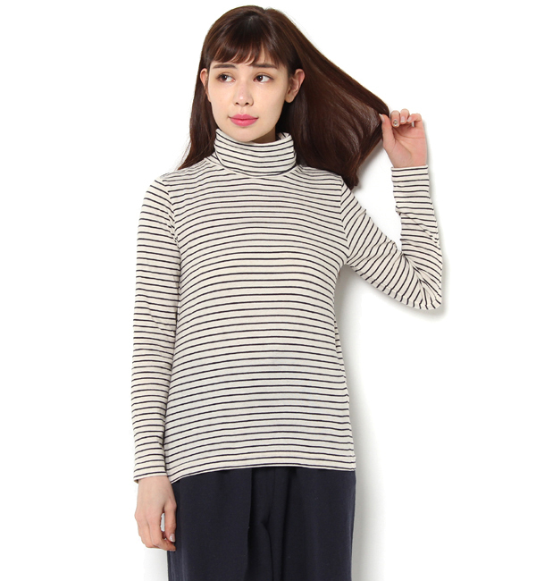 【3000円(税込)以上で送料無料】 ボーダーのタートルネックプルオーバー。程よくゆとりのあるフィット感で、ガーゼベア天竺が着心地良く、デイリーに幅広く活躍してくれるワードローブの頼もしい味方です◎カジュアルな中に大人のフェミニティ漂うアイテムは、ワードローブの即戦力として幅広いコーディネートが楽しめそう! サマンサモスモス/Samansa Mos2 トップス|Tシャツ・カットソー,その他