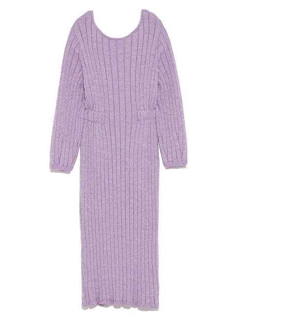 【送料無料】 【着心地抜群ニットワンピースは、ラメ入り素材でエッジィに】後ろがカシュクールデザインになった、バックシャンワンピース。トップス部分とスカート部分のリブ幅に変化をつけることで、自然と体に馴染むシルエットに。ウエストは両サイドから後ろまで、幅広のゴムを配しているので、着るだけで自然とブラウジングします。レースやネオンカラーのインナーをレイヤードして楽しむのもあり。スラブ糸とラメ糸を一緒に編み上げた、ニュアンスと煌めきを放つニットが主役。軽い肌触りと透け感のある素材なので、春先から初夏まで活躍してくれます。※商品画像はサンプルのため、色味やサイズ等の仕様に変更がある場合がございますので、予めご了承ください。 スナイデル/snidel snidel|ワンピース|ワンピース