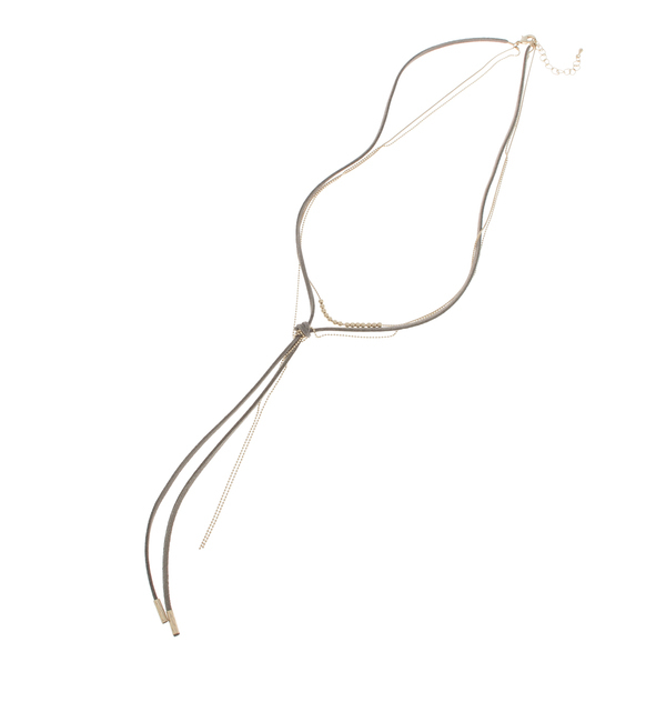 【3000円(税込)以上で送料無料】 チェーンとスエード調のコードがコンビになったネックレス。いま流行りのコードネックレスがチェーンと既に形になっているのでサッとつけられてきまるアイテムです。店舗へのお問い合わせ商品番号:769-82020 韓国製 グローブ/grove grove|アクセサリー ・ヘアアクセサリー|ネックレス