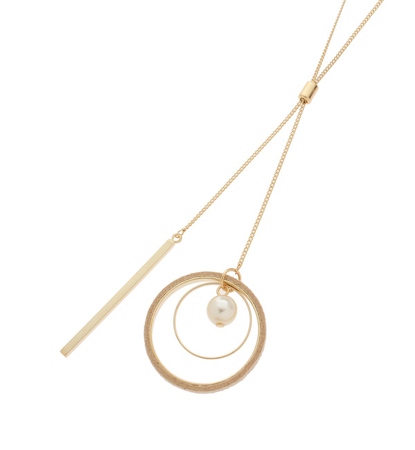 【3000円(税込)以上で送料無料】 デコルテにすっと落ちる様が美しいスライダーネックレスです。フェルトリングの中央にフェイクパールを揺らした、洗練された上品なモチーフが印象的です。甘さを抑えつつ、モダンで季節感のある胸元に仕上げてくれる個性的なアクセサリーです。店舗へのお問い合わせ商品番号:F97-83021 韓国製 シューラルー/SHOO・LA・RUE DRESKIP / FASHION GOODS|アクセサリー ・ヘアアクセサリー|ネックレス